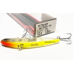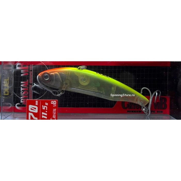 "The Crystal Vib isn't your typical vibration lure. It's a revolutionary lure that has created a new category of lures. Its thin minnow shape and highly-detailed appearance will tempt the wariest of the fish. Its subtle and steady vibration sound and natural action will attack the fish. Unlike current vibration lures, the Crystal Vib stays horizontal whether retrieved or allowed to fall (natural rolling action), convincing the fish. And its razor sharp hook will hold the fish. All you have to do is set the hook and say, Fish On! 3D holographic eyes make this lure easy for fish to spot. Superior-quality laser finished body. Flashes just like a real bait fish. Provides incredible tight, vibrating movements. Smooth maneuvering for both a slow and fast retrieve".