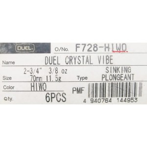 "The Crystal Vib isn't your typical vibration lure. It's a revolutionary lure that has created a new category of lures. Its thin minnow shape and highly-detailed appearance will tempt the wariest of the fish. Its subtle and steady vibration sound and natural action will attack the fish. Unlike current vibration lures, the Crystal Vib stays horizontal whether retrieved or allowed to fall (natural rolling action), convincing the fish. And its razor sharp hook will hold the fish. All you have to do is set the hook and say, Fish On! 3D holographic eyes make this lure easy for fish to spot. Superior-quality laser finished body. Flashes just like a real bait fish. Provides incredible tight, vibrating movements. Smooth maneuvering for both a slow and fast retrieve".